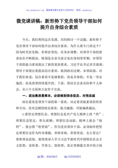 / 微党课讲稿:新形势下党员领导干部如何提升自身综合素质