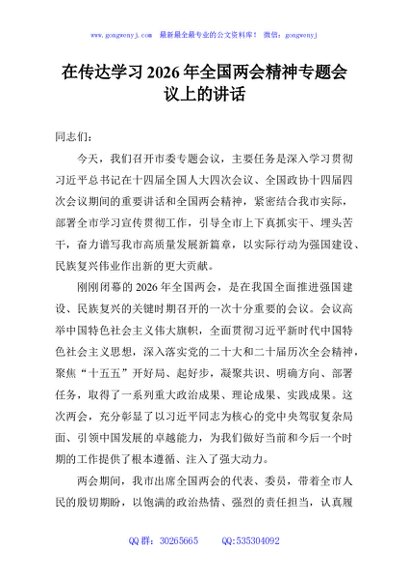 / 在传达学习2026年全国两会精神专题会议上的讲话