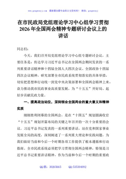/ 在市民政局党组理论学习中心组学习贯彻2026年全国两会精神专题研讨会议上的讲话