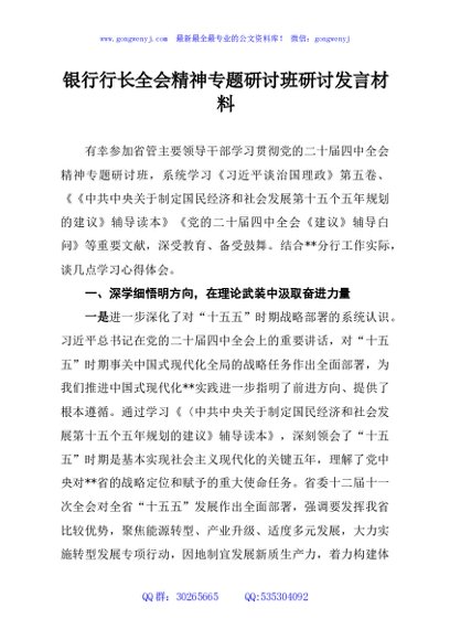 / 银行行长全会精神专题研讨班研讨发言材料