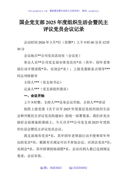 / 国企党支部2025年度组织生活会暨民主评议党员会议记录