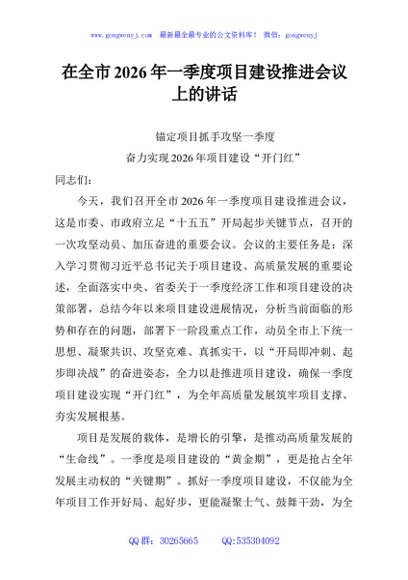 / 在全市2026年一季度项目建设推进会议上的讲话