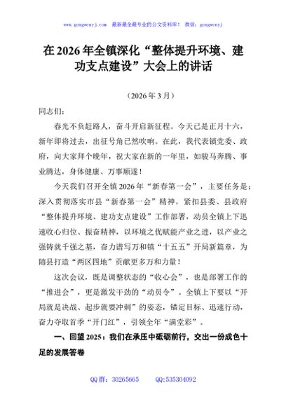 / 在2026年全镇深化“整体提升环境、建功支点建设”大会上的讲话