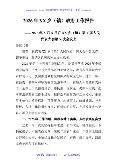 / 2026年XX乡(镇)政府工作报告
