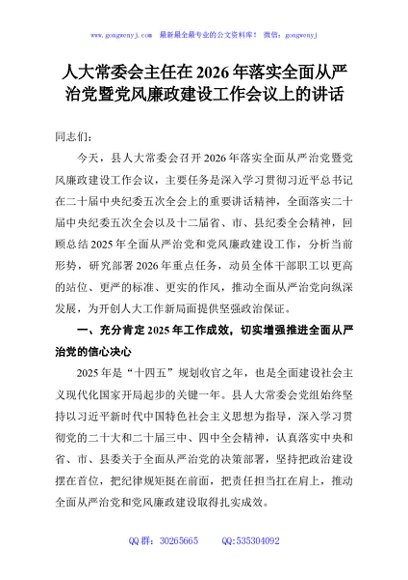 / 人大常委会主任在2026年落实全面从严治党暨党风廉政建设工作会议上的讲话