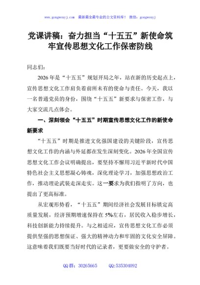 / 党课讲稿:奋力担当“十五五”新使命筑牢宣传思想文化工作保密防线
