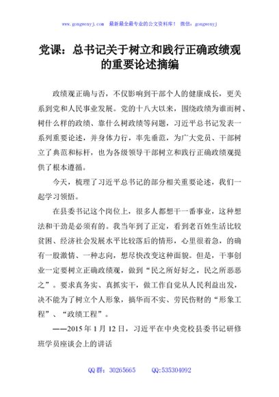 党课:总书记关于树立和践行正确政绩观的重要论述摘编