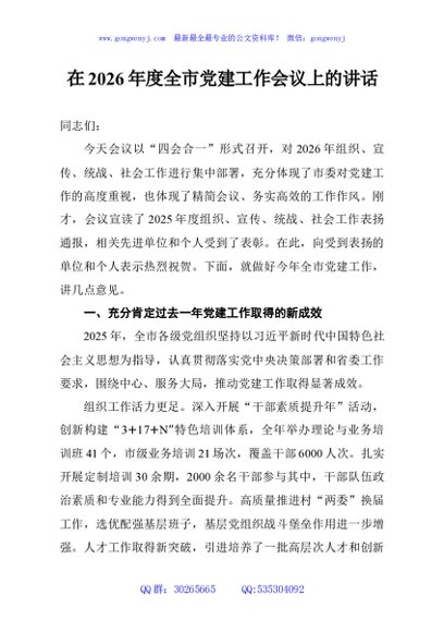 / 在2026年度全市党建工作会议上的讲话