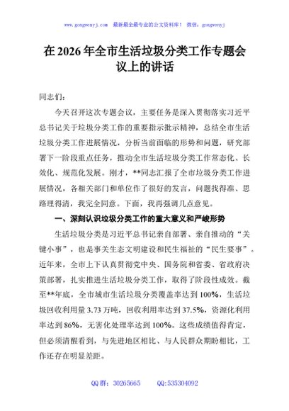 未生成预览图,长按二维码添加 在2026年全市生活垃圾分类工作专题会议上的讲话 - 公文研究