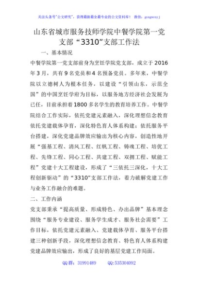 学院第一党支部“3310”支部工作法(党建品牌)