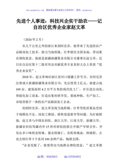 未生成预览图,长按二维码添加 先进个人事迹:科技兴企实干助农——记自治区优秀企业家赵文革 - 公文研究