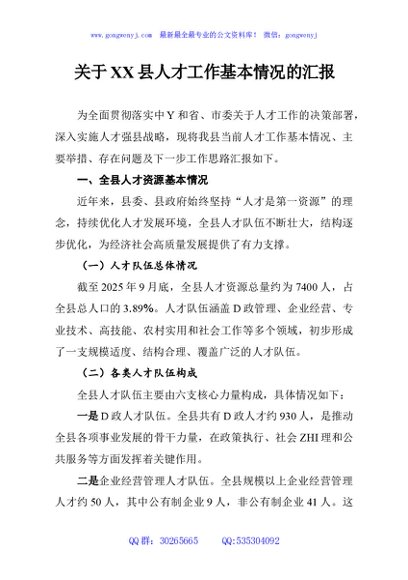 未生成预览图,长按二维码添加 关于XX县人才工作基本情况的汇报 - 公文研究