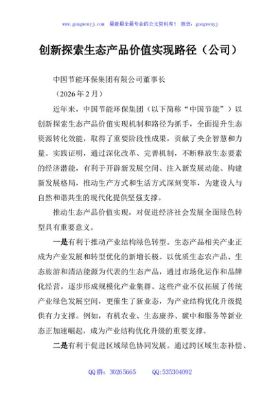 未生成预览图,长按二维码添加 创新探索生态产品价值实现路径(公司) - 公文研究