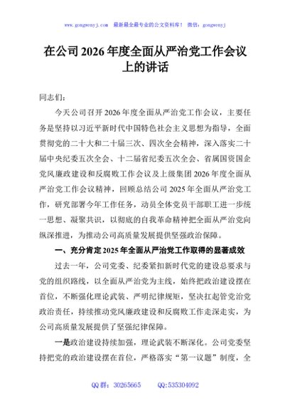 / 在公司2026年度全面从严治党工作会议上的讲话