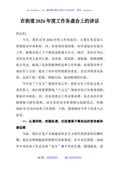 / 在街道2026年度工作务虚会上的讲话
