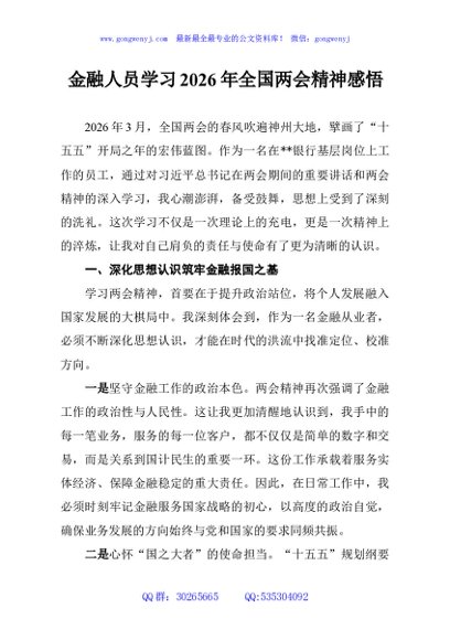 / 金融人员学习2026年全国两会精神感悟