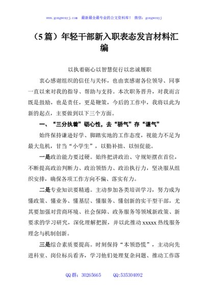 / (5篇)年轻干部新入职表态发言材料汇编