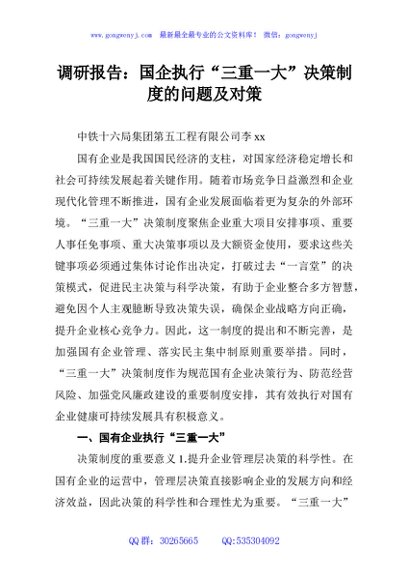 / 调研报告:国企执行“三重一大”决策制度的问题及对策