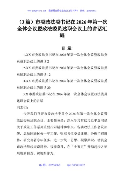 / (3篇)市委政法委书记在2026年第一次全体会议暨政法委员述职会议上的讲话汇编