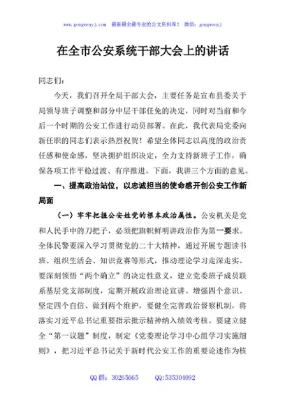 / 在全市公安系统干部大会上的讲话