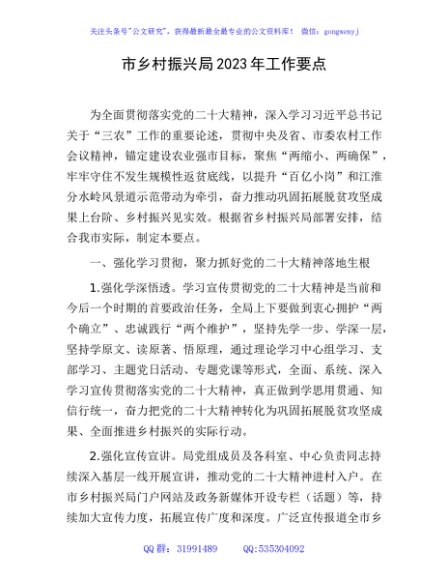/ 市乡村振兴局2023年工作要点