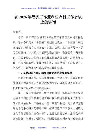 在2026年经济工作暨农业农村工作会议上的讲话