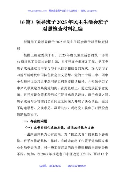 / (6篇)领导班子2025年民主生活会班子对照检查材料汇编