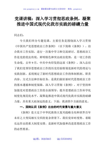 党课讲稿:深入学习贯彻思政条例,凝聚推进中国式现代化我市实践的磅礴力量 - 公文研究