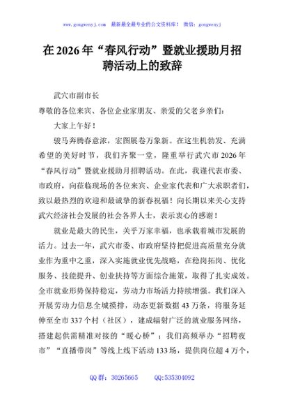 / 在2026年“春风行动”暨就业援助月招聘活动上的致辞