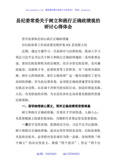 / 县纪委常委关于树立和践行正确政绩观的研讨心得体会