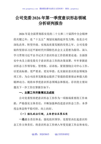 / 公司党委2026年第一季度意识形态领域分析研判报告