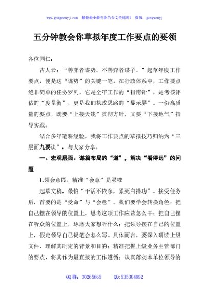 / 五分钟教会你草拟年度工作要点的要领