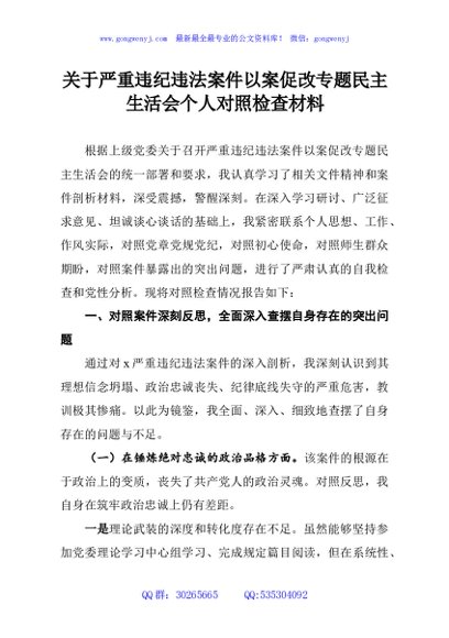 / 关于严重违纪违法案件以案促改专题民主生活会个人对照检查材料