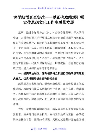 深学细悟真查实改——以正确政绩观引领宣传思想文化工作高质量发展