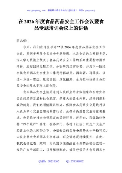 / 在2026年度食品药品安全工作会议暨食品专题培训会议上的讲话