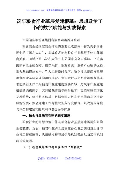 / 筑牢粮食行业基层党建根基:思想政治工作的数字赋能与实践探索