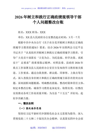 / 2026年树立和践行正确政绩观领导干部个人问题整改台账