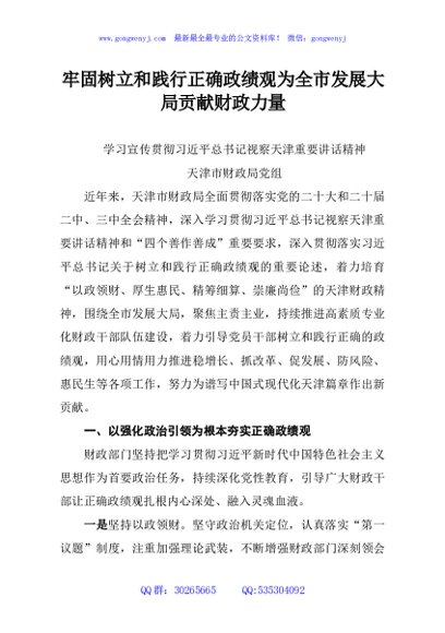 / 牢固树立和践行正确政绩观为全市发展大局贡献财政力量
