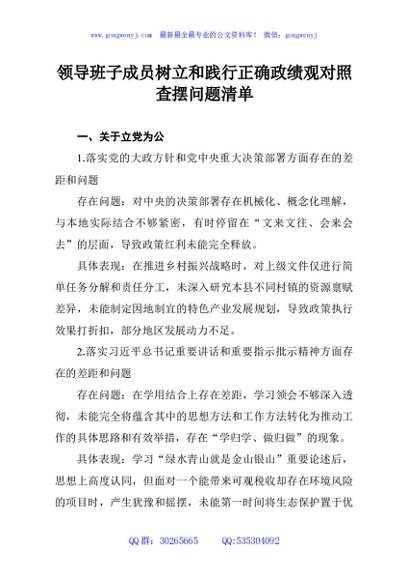 未生成预览图,长按二维码添加 领导班子成员树立和践行正确政绩观对照查摆问题清单 - 公文研究