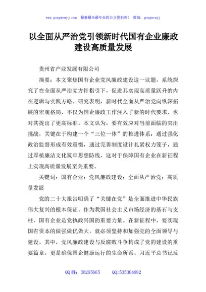 / 以全面从严治党引领新时代国有企业廉政建设高质量发展