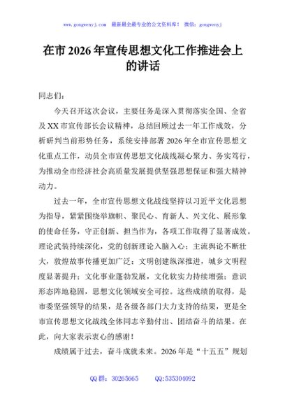 / 在市2026年宣传思想文化工作推进会上的讲话
