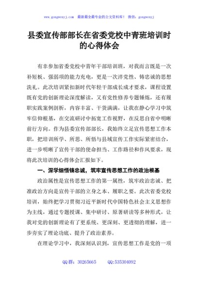 / 县委宣传部部长在省委党校中青班培训时的心得体会