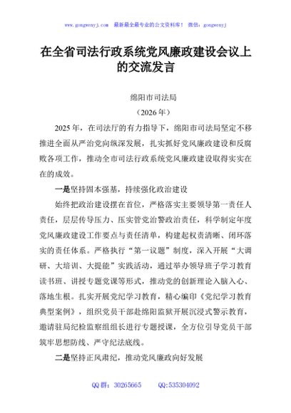 / 在全省司法行政系统党风廉政建设会议上的交流发言