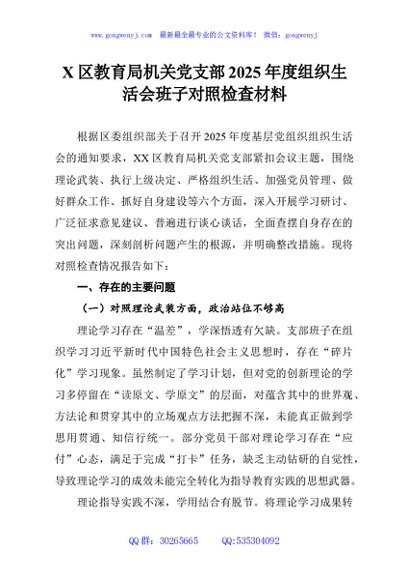 / X区教育局机关党支部2025年度组织生活会班子对照检查材料