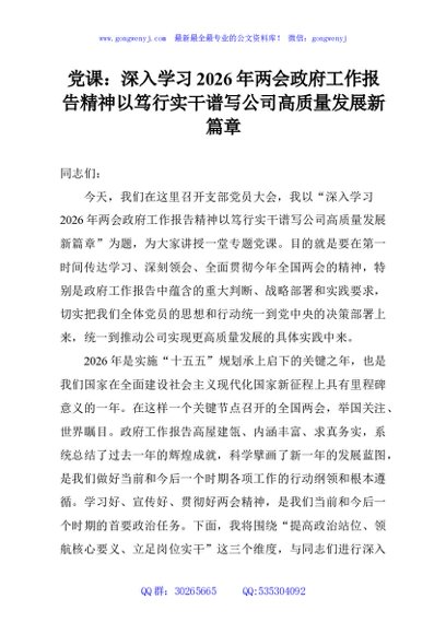/ 党课:深入学习2026年两会政府工作报告精神以笃行实干谱写公司高质量发展新篇章