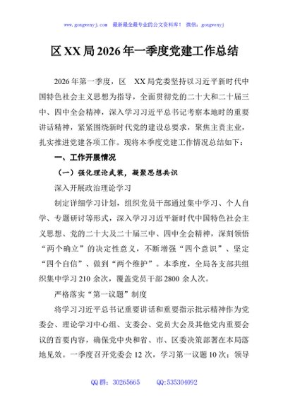 / 区XX局2026年一季度党建工作总结