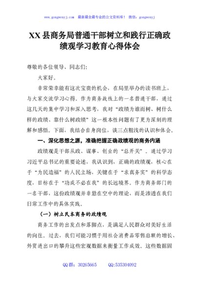 / XX县商务局普通干部树立和践行正确政绩观学习教育心得体会