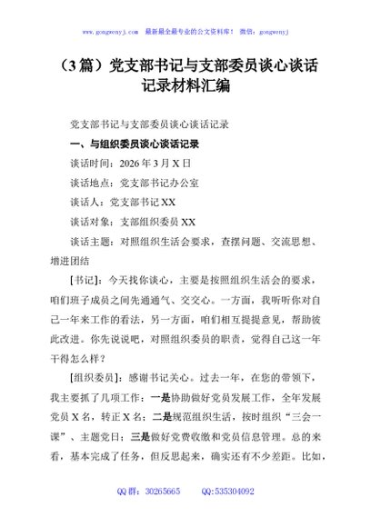 / (3篇)党支部书记与支部委员谈心谈话记录材料汇编