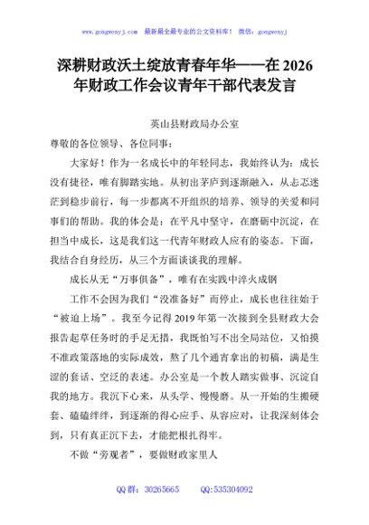/ 深耕财政沃土绽放青春年华——在2026年财政工作会议青年干部代表发言