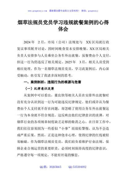 / 烟草法规员党员学习违规就餐案例的心得体会